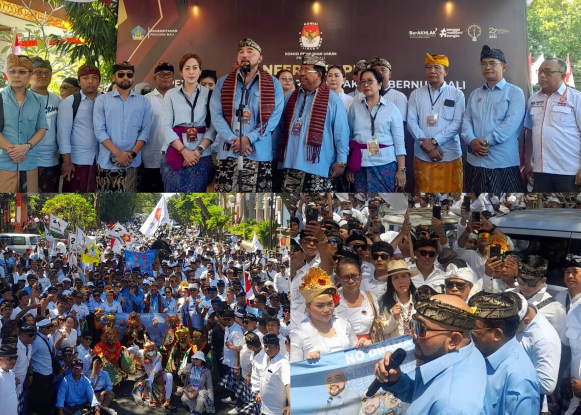 Balitopik.com – Menyala, pidato perdana Calon Gubernur Bali 2024, Made Muliawan Arya alias De Gadjah membakar semangat ribuan pendukung saat mengarak pasangan Mulia – PAS menuju KPU Bali untuk mendaftarkan diri sebagai calon Gubernur dan Wakil Gubernur Bali periode 2024-2029.