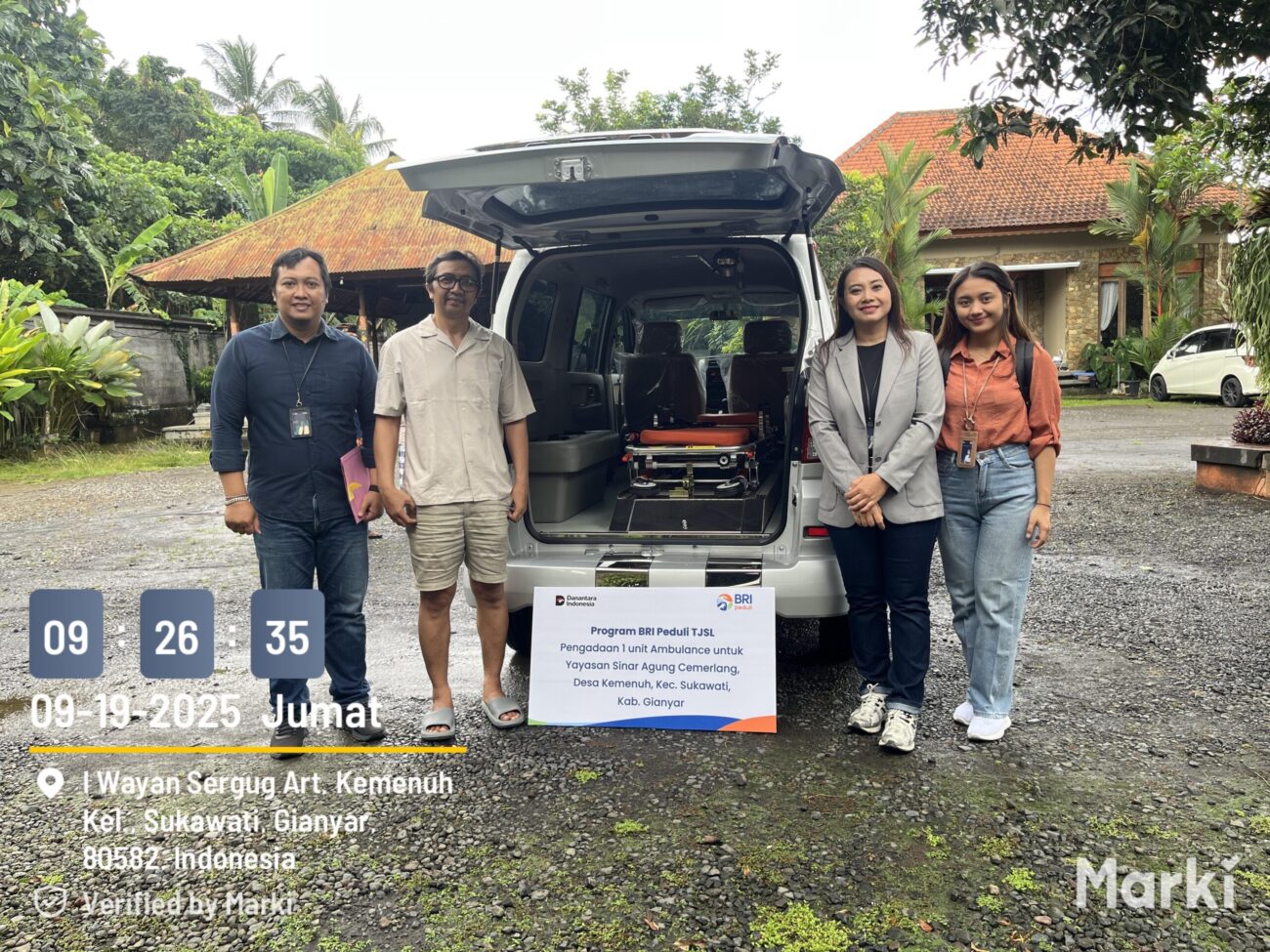 Balitopik.com, GIANYAR – Sebagai bentuk kepedulian terhadap masyarakat, PT Bank Rakyat Indonesia (Persero) Tbk melalui BRI Cabang Gianyar menyalurkan bantuan berupa satu unit ambulance kepada Yayasan Sinar Agung Cemerlang, Desa Kemenuh, Kecamatan Sukawati, Kabupaten Gianyar, Jumat (19/9/2025).