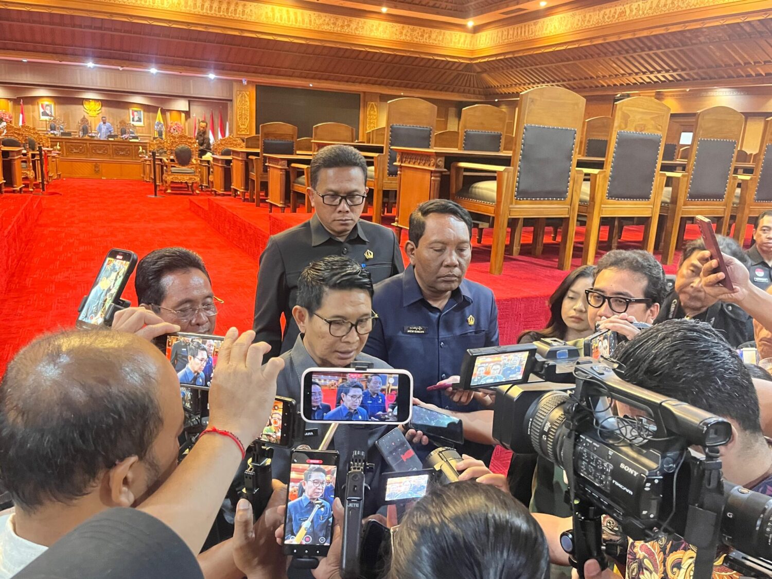 Foto Kiri: Wakil Gubernur Bali I Nyoman Giri Prasta, Ketua DPRD Bali Dewa Made Mahayadnya (Dewa Jack) dan jajaran pimpinan DPRD Bali lainnya. -Balitopik.com