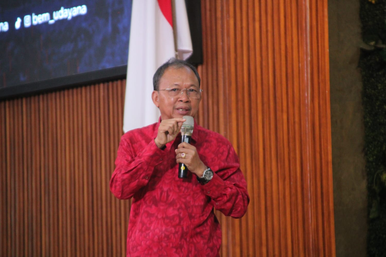 Hal ini disampaikannya saat tampil sebagai pembicara pada Diskusi Publik “Sang Pewahyu Rakyat” oleh Badan Eksekutif Mahasiswa Universitas Udayana Tahun 2026, di Aula Auditorium Widya Sabha, Jimbaran, Badung, Rabu (18/2/2026).