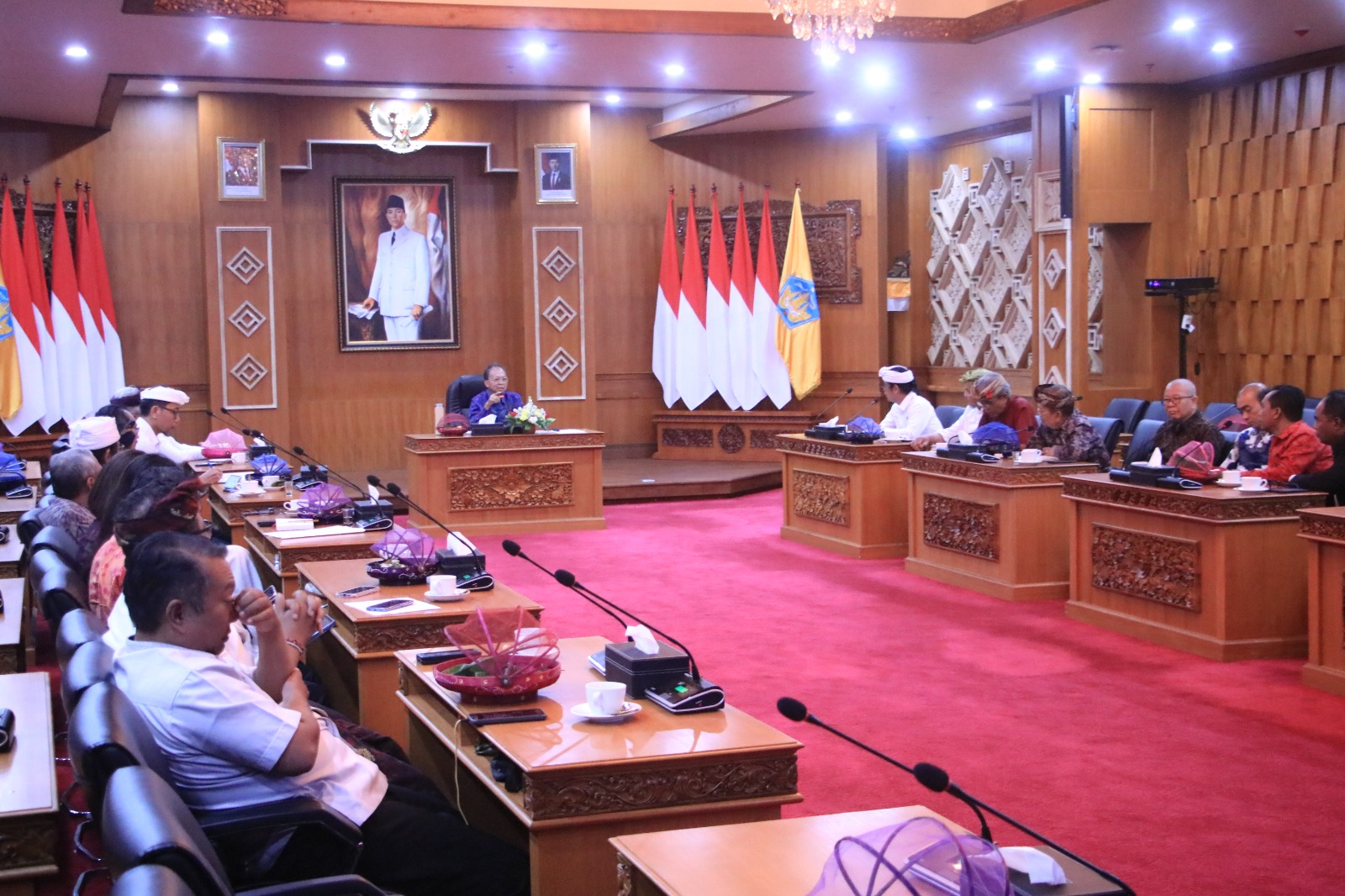 Rapat berlangsung di Gedung Kertha Sabha, Jaya Sabha, Denpasar, Rabu (11/3/2026), dan dipimpin langsung Gubernur Bali, Wayan Koster. Sejumlah perwakilan majelis agama dan unsur terkait turut hadir dalam pertemuan tersebut.