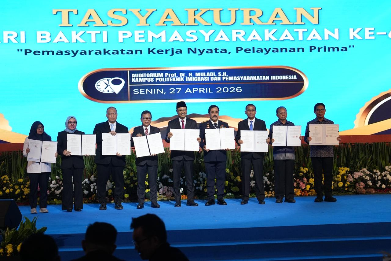 Penandatanganan berlangsung dalam rangkaian Puncak Hari Bhakti Pemasyarakatan ke-62 Tahun 2026 yang digelar di Kampus Poltek Imigrasi dan Pemasyarakatan (Poltek IMPAS) Tangerang, Banten, Senin (27/4/2026).