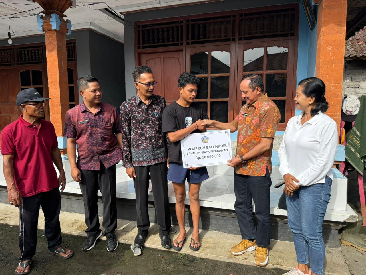 Balitopik.com, BANGLI — Pemerintah Provinsi Bali melalui program Pemprov Bali Hadir kembali menunjukkan kepeduliannya terhadap masyarakat kurang mampu. Kali ini, bantuan pendidikan sebesar Rp10 juta diserahkan kepada I Made Pasek Esa Putra (18), seorang anak yatim asal Banjar Sala, Desa Abuan, Kecamatan Susut, Kabupaten Bangli, Selasa (30/12/2025) pagi.